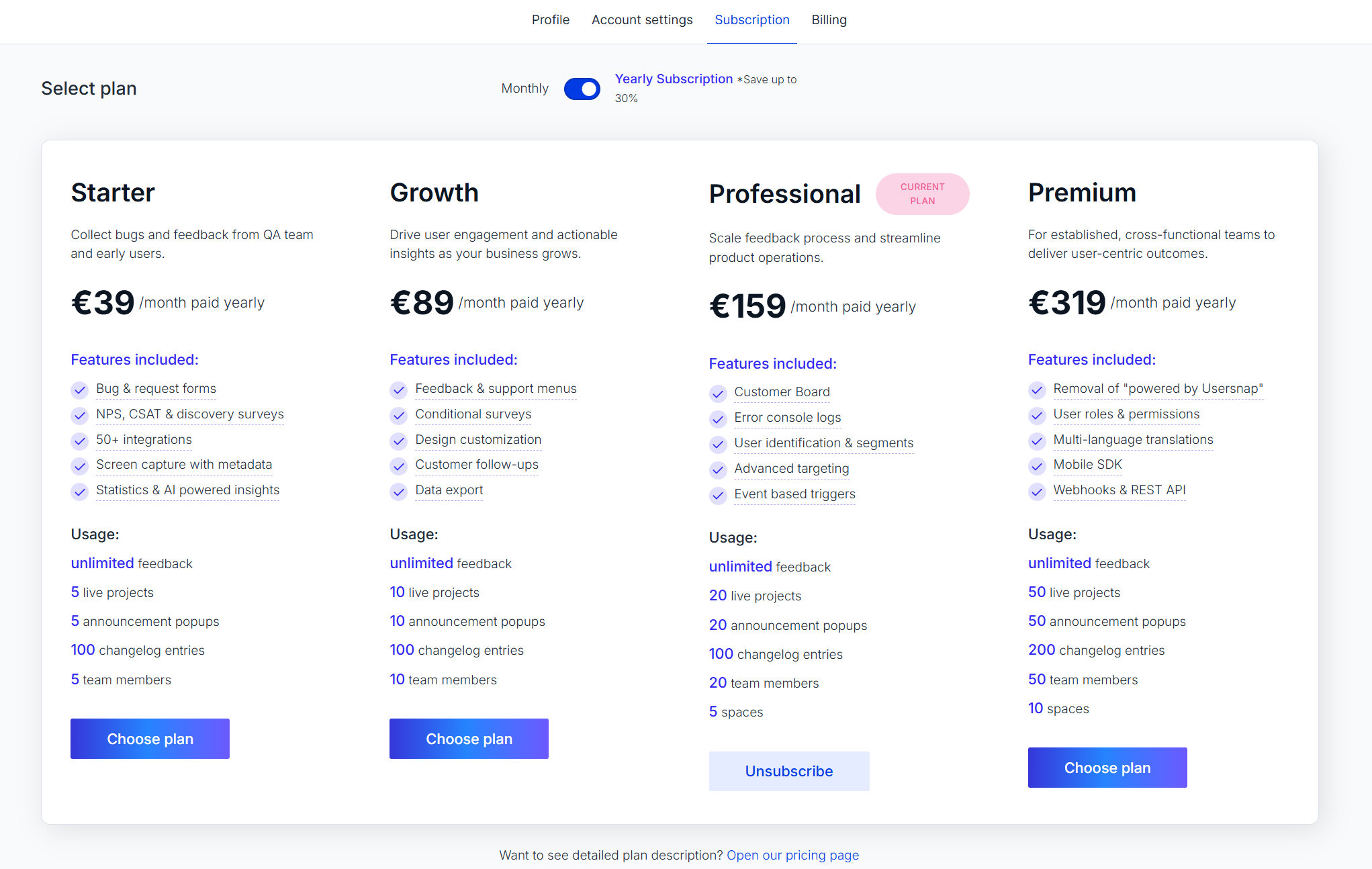 As the team admin, you can change your team's subscription by navigating to My Account -> Subscription and choosing a different plan.
