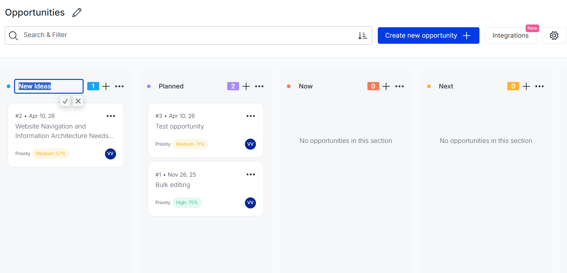 The Opportunities is a roadmapping tool powered by real customer feedback: helping you track, prioritize, and plan actions based on solid evidence.