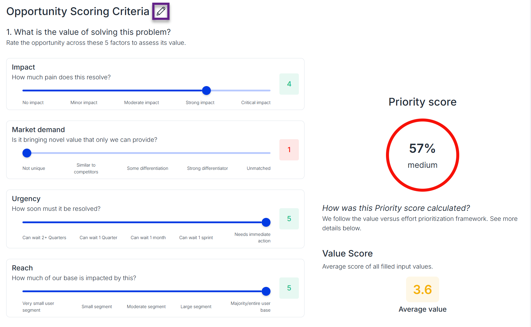 - Score the value of the opportunity: