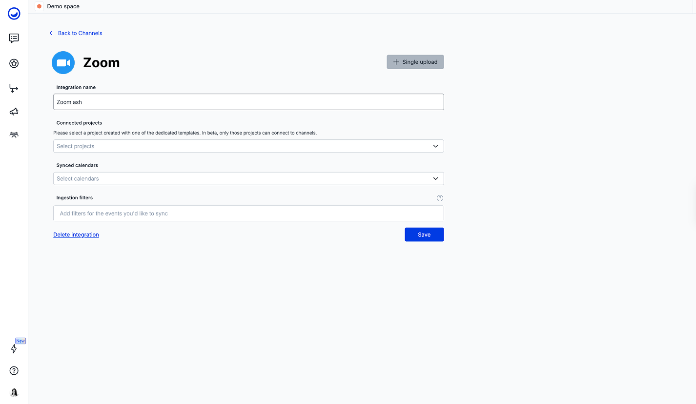 Once connected, you will be able to configure which Zoom Cloud transcripts you want to push and to which projects. If something doesn’t work as expected, check your Zoom permissions, or reach out to our support team.